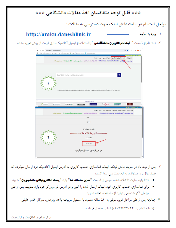 مراحل ثبت نام در سايت دانش لينك جهت دسترسي به مقالات - مدیریت امور فناوری اطلاعات و ارتباطات