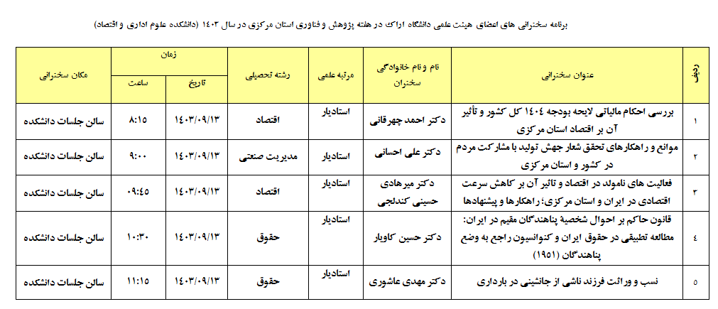 سخنرانی هفته پژوهش در دانشکده علوم اداری و اقتصاد - حقوق و علوم اقتصادی