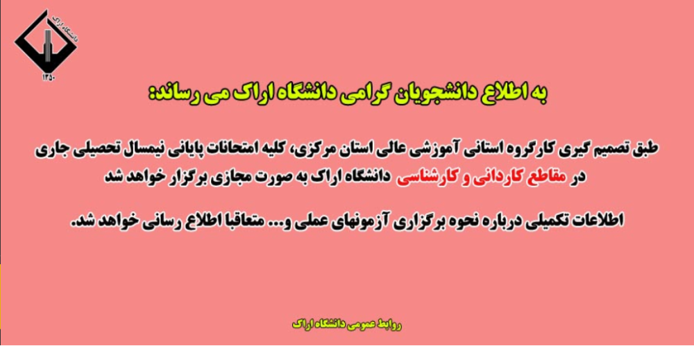 برگزاری آزمون های پایان نیمسال تحصیلی جاری