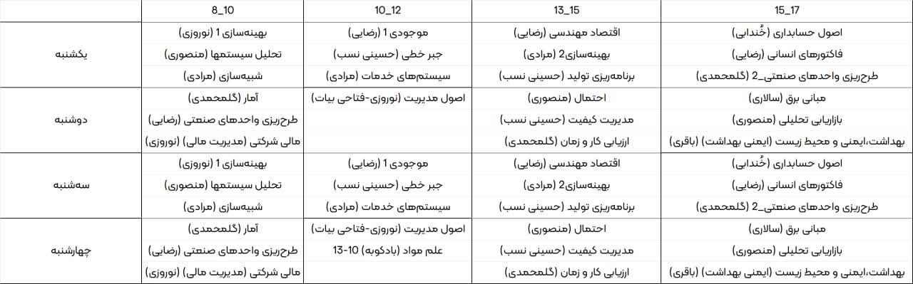 برنامه ترم جاری