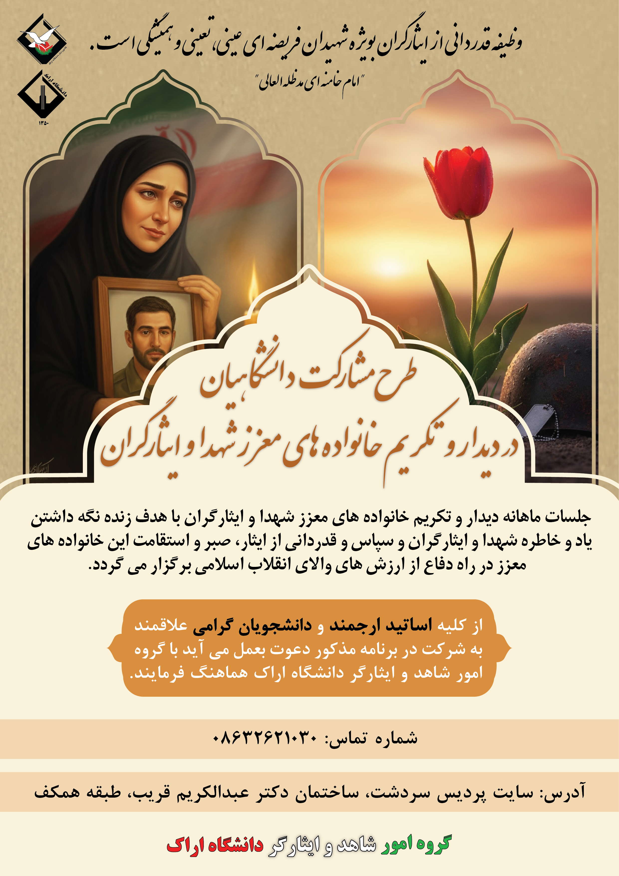 "پوستر های عرض تبریک و تسلیت مناسبت های مذهبی ، ملی و دفاع مقدس گروه امور شاهد و ایثارگر دانشگاه اراک "